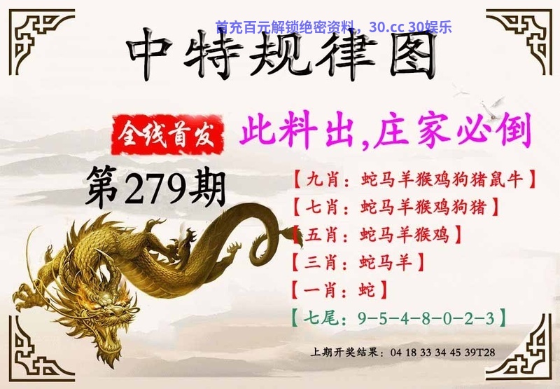 277期:阴阳两肖✠阳肖+蛇马✠开:虎16准 |